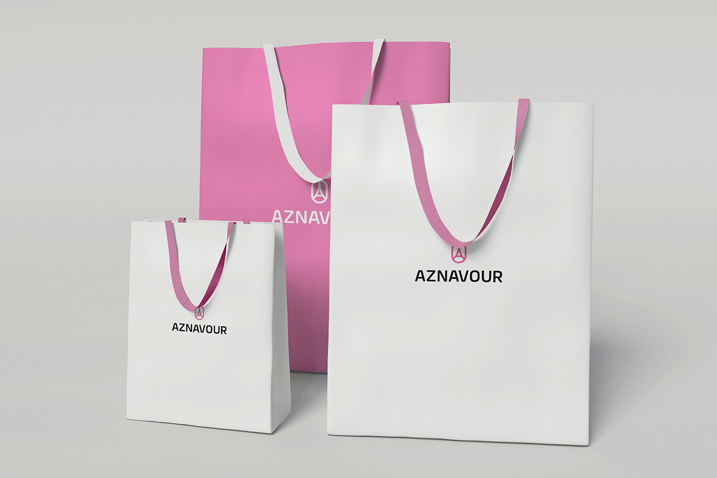아즈나브르의 BI는 이니셜 A와 유럽을 상징적으로 표현할 수 있는 에펠탑을 모티브로 표현하였고, 둥글고 부드럽게 가공된 심벌 마크는 아즈나브르의 핵심 가치인 섬세하고 부드러운 기술력과 아름다움을 표현하였습니다. 또한 밝은 핑크 컬러를 브랜드 컬러로 사용해 여성스럽고 부드러운 브랜드 이미지를 부각하고 있습니다.