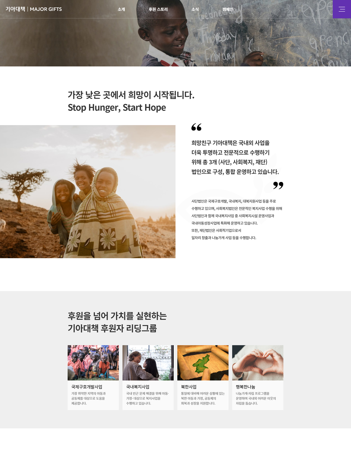 디자인팝(NO.1 E-Commerce Digital Creative Group)이 기아대책의 MAJOR GIFTS 통합 웹사이트 개발을 완료하였습니다.