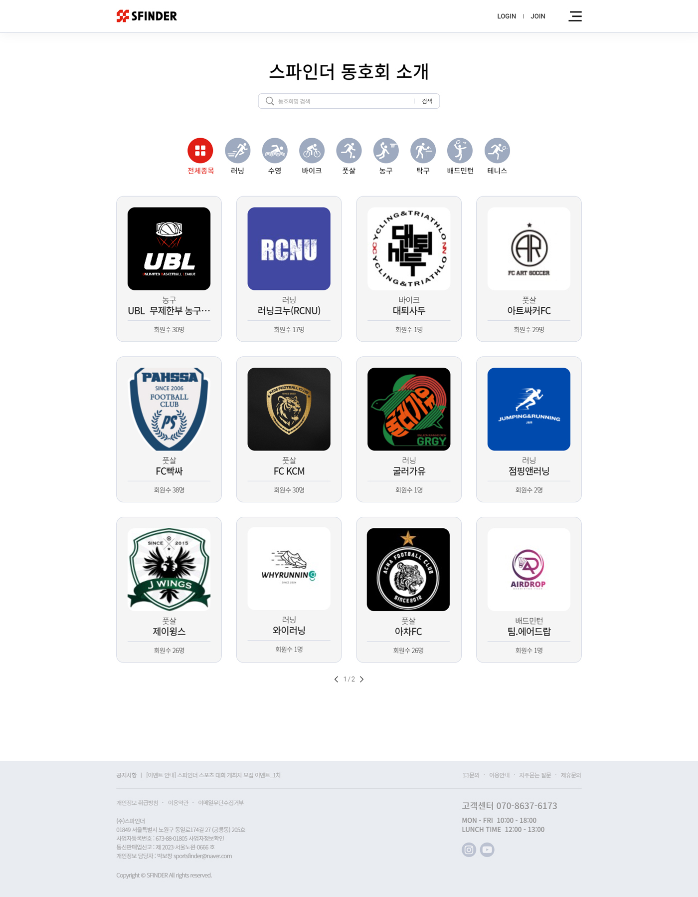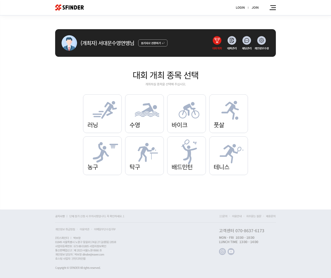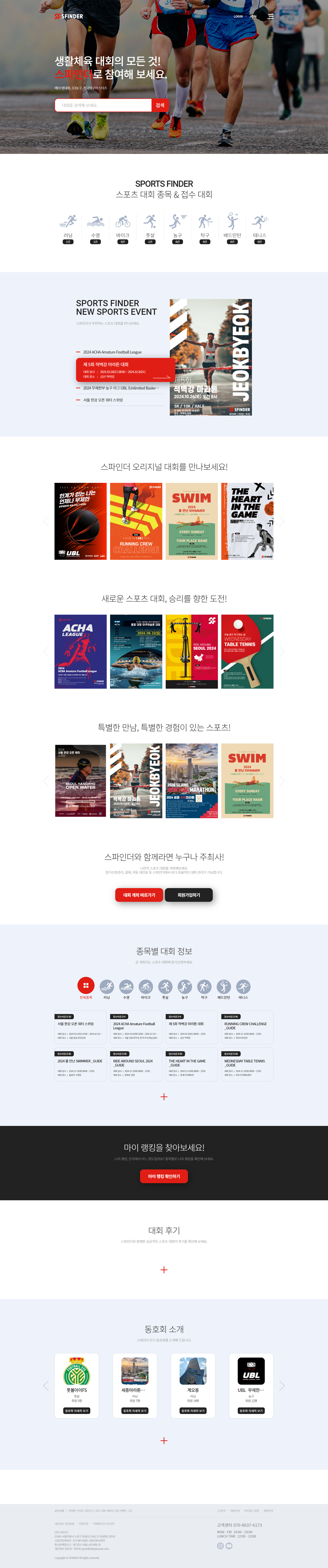 스파인더는 전국 아마추어 동호회 및 생활체육 대회 개최 및 참가 신청을 위한 스타트업 플랫폼입니다.