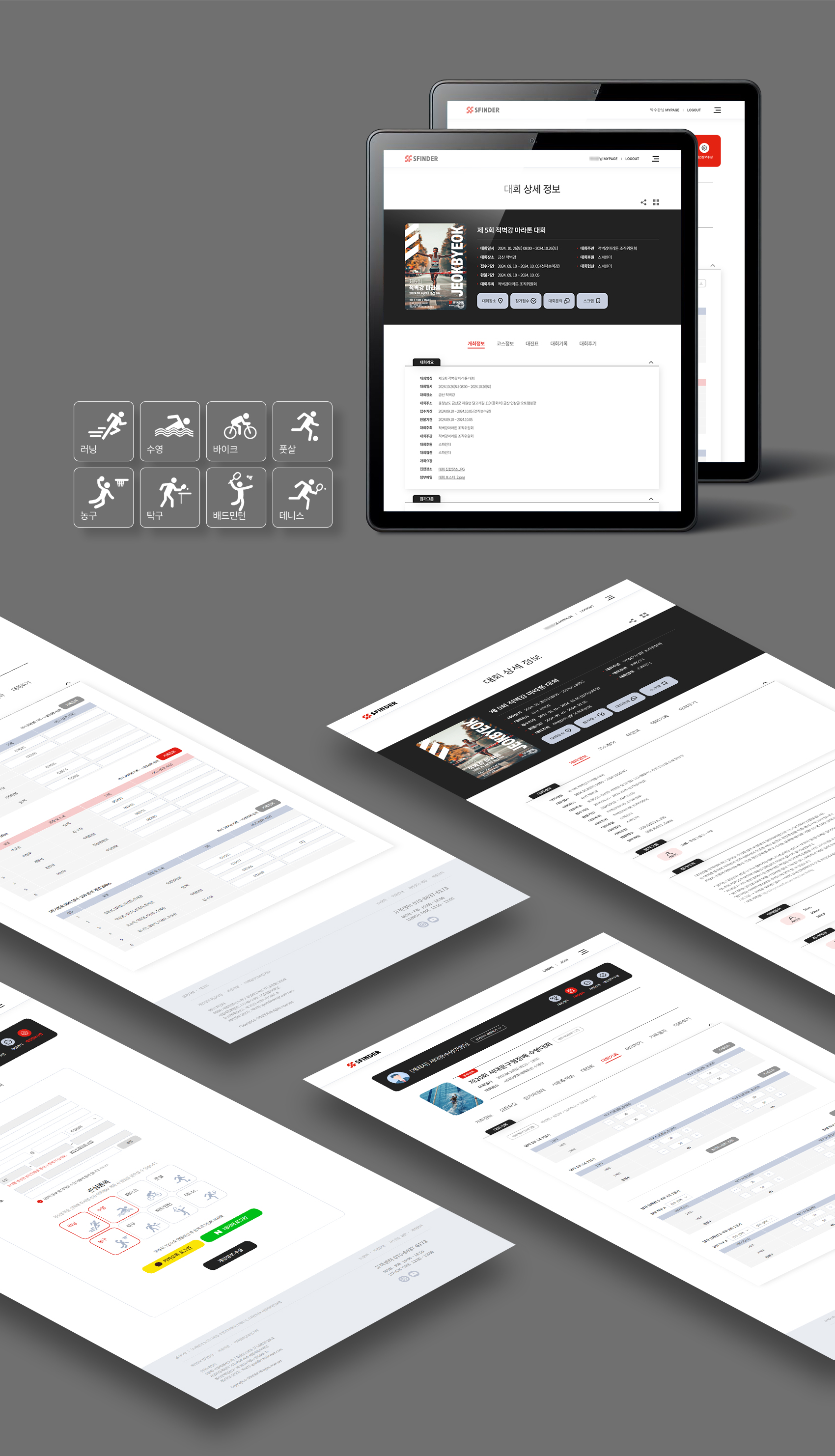 또한 대회 참가자가 많은 수영부터 테니스까지 총 8개의 종목을 우선 오픈 및 운영하고 있으며, 큰 대회부터 작은 크루 대회까지 진행하며, 생활체육에 꼭 필요한 동호회 서비스를 통해 동호회 회원 관리, 단체 접수, 소통할 수 있는 게시판 등 동호회의 많은 서비스를 지원하고 있습니다.