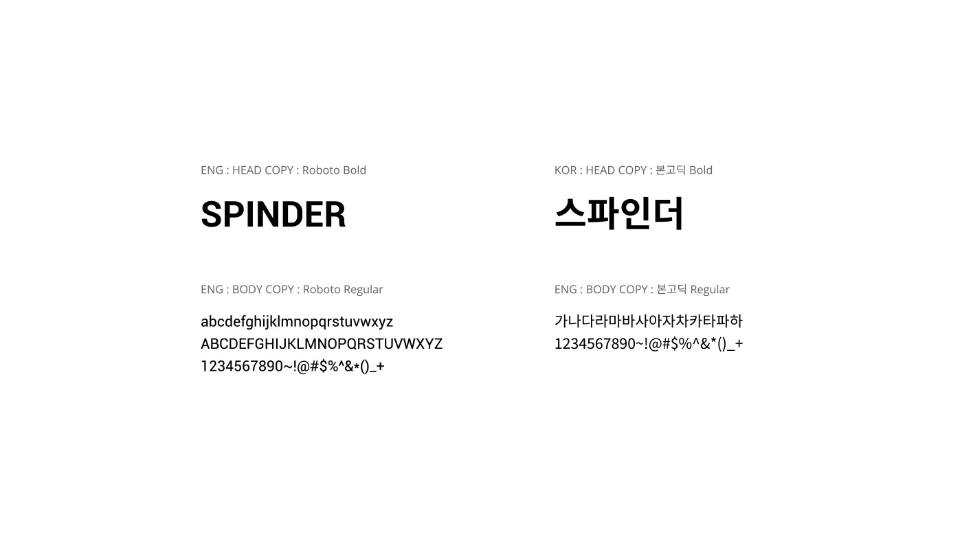 스파인더의 CI개발은 이니셜 "S"와 "F"에서 영감을 받아 디자인되었으며, 네 개의 유닛이 모여 하나의 심볼을 완성하는 형태를 통해 스파인더의 매력적인 크리에이티브를 표현하였습니다.