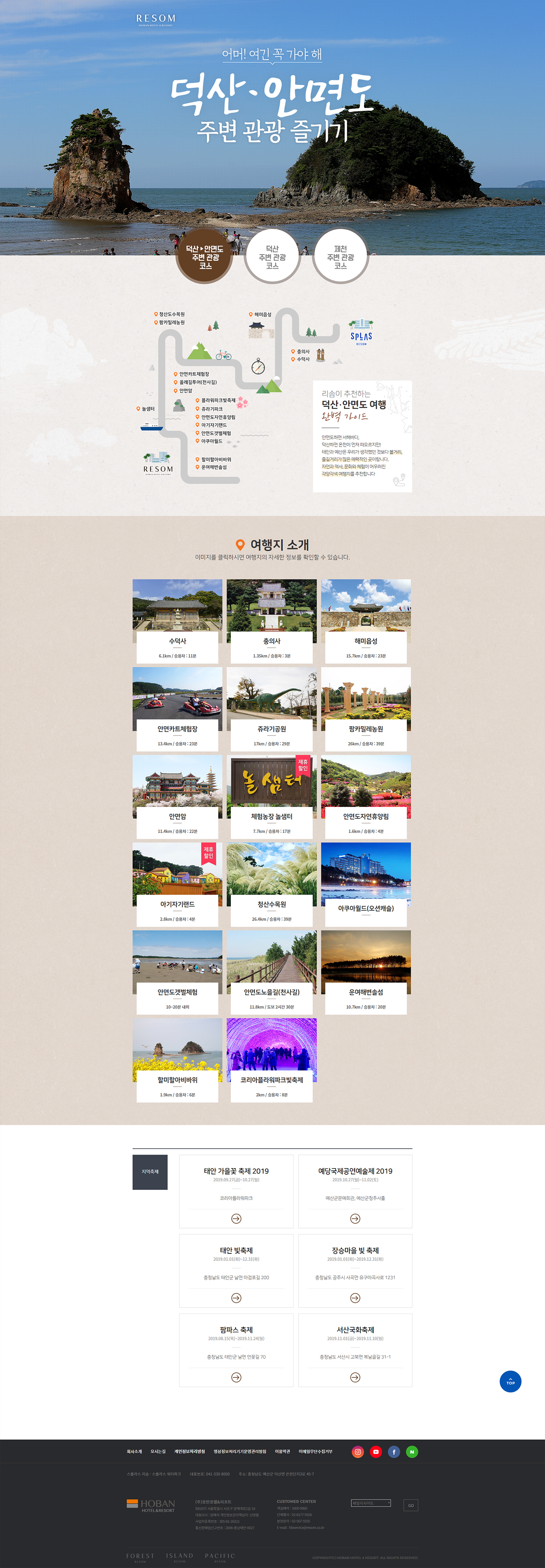 디자인팝은 2015년도 리솜리조트 본사 및 포레스트, 스파캐슬, 오션캐슬의 전체 웹사이트 리뉴얼 및 통합예약시스템 구축 및 2020년까지 호반그룹으로 인수 이후의 웹사이트까지 꾸준히 운영하고 있으며, 각 사업장별 브랜드 웹사이트를 리뉴얼하고 있습니다.