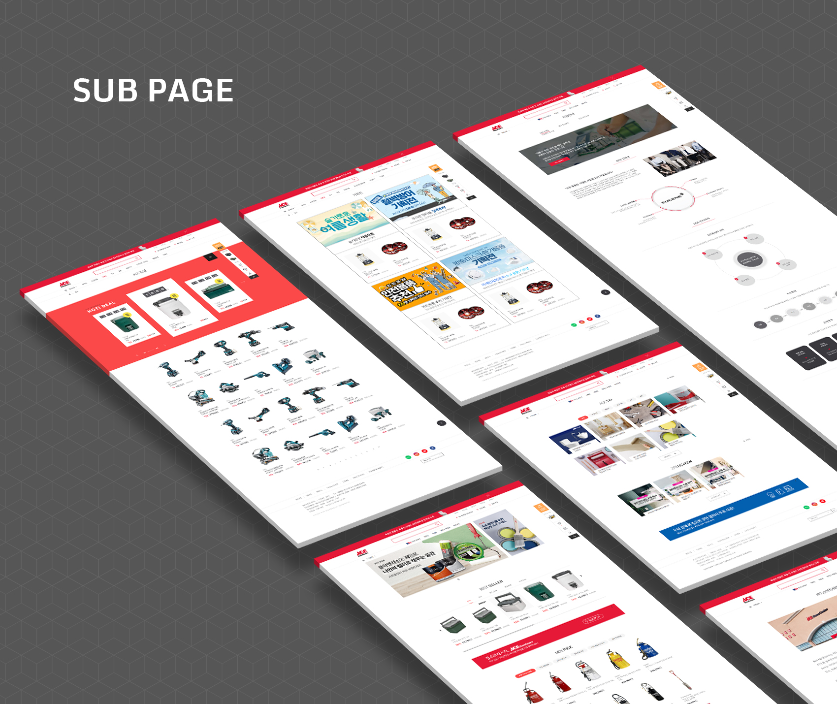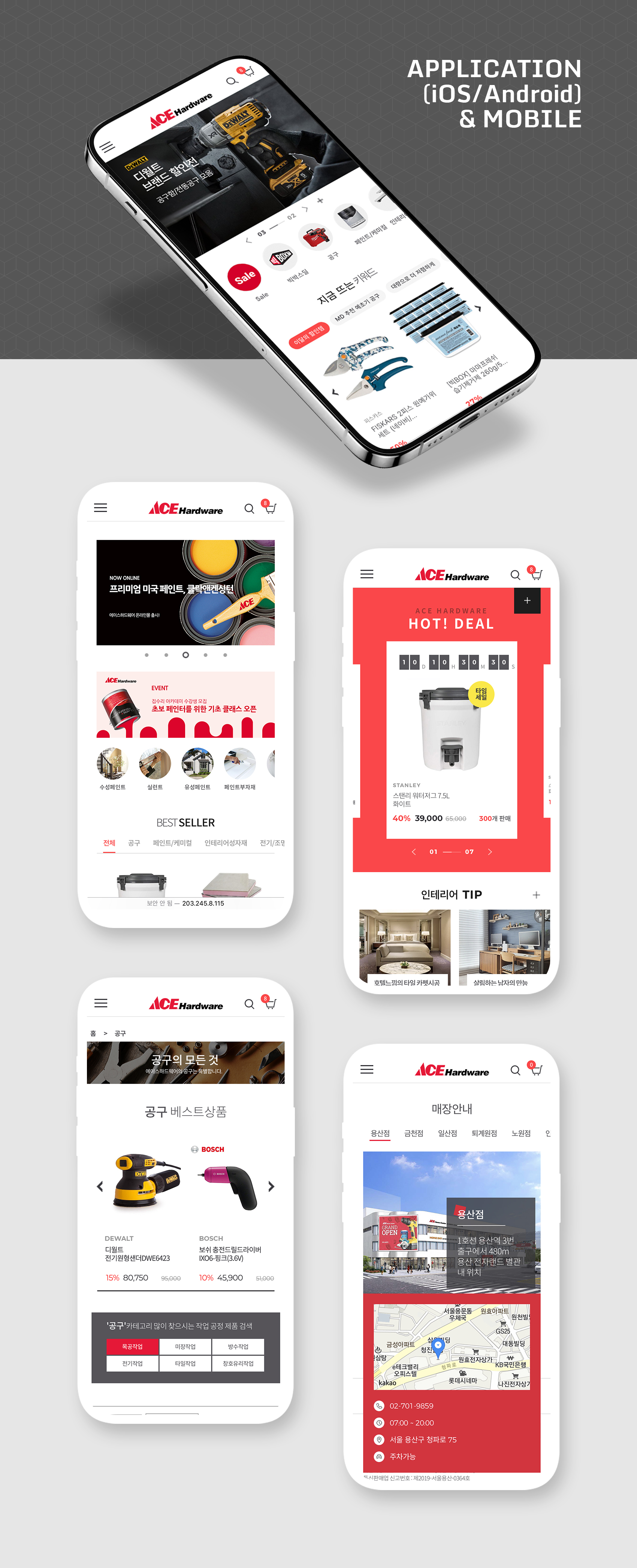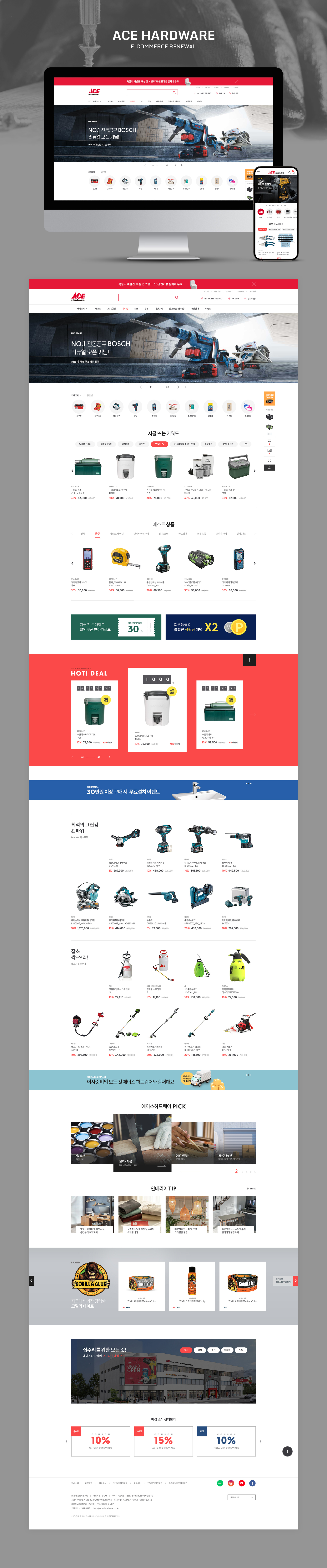 디자인팝(NO.1 E-Commerce Digital Creative Group)이 집수리에 필요한 모든 것을 판매하는 에이스하드웨어의 이커머스(반응형 쇼핑몰) 프로젝트와 모바일 어플리케이션을 개발하였습니다.